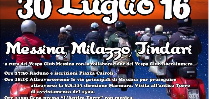 Cari Amici e Soci Il Vespa Club Messina con la partecipazione del Vespa Club Roccalumera organizza il primo Raduno denominato “ 1a Notte sotto le Stelle… Aspettando l’alba su due ruote” per il giorno...