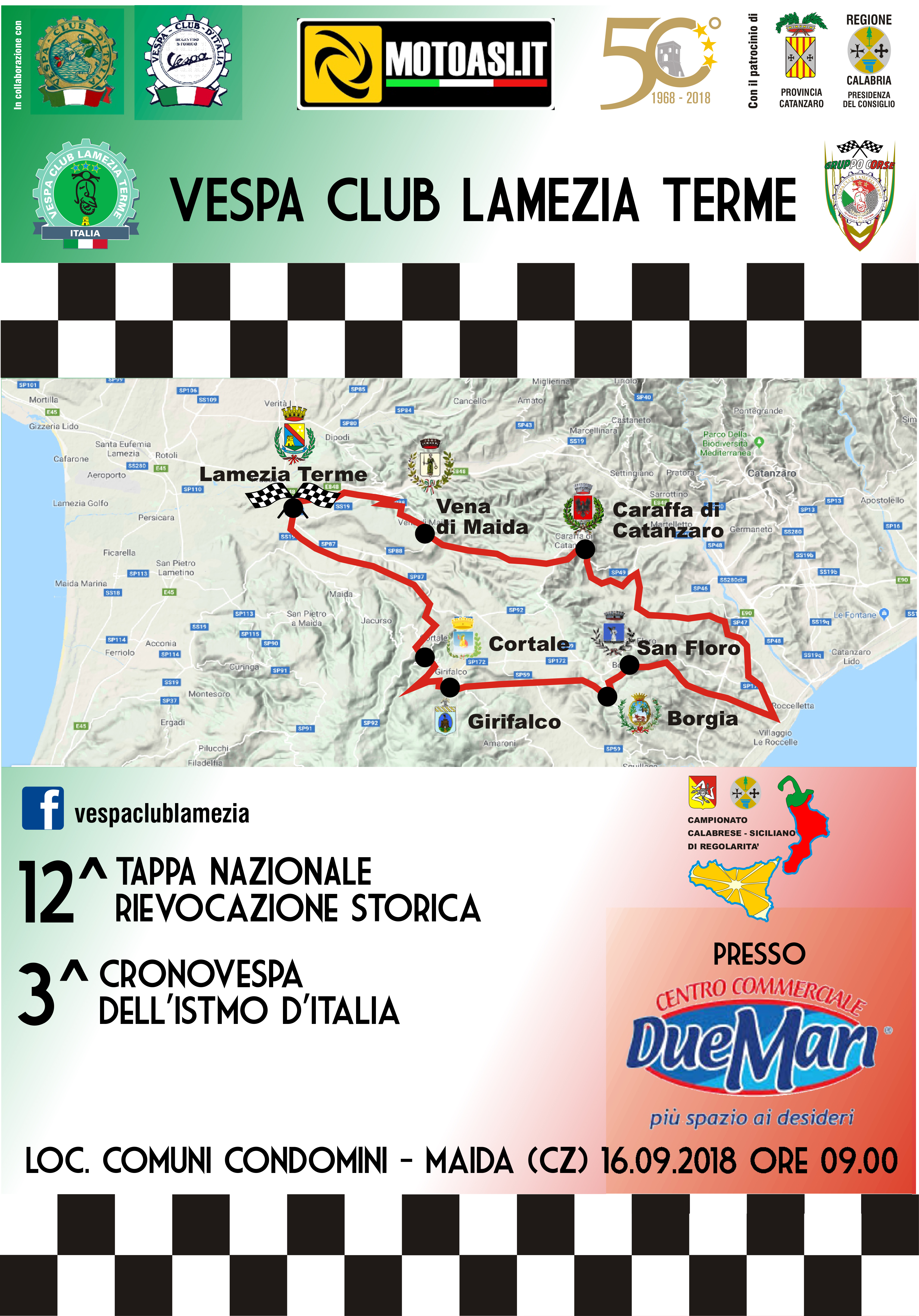 Il VESPA CLUB LAMEZIA TERME in collaborazione con la MOTOASI SPORT organizza in data 16 Settembre 2018 la manifestazione denominata “CRONOVESPA DEL’ISTMO D’ITALIA”