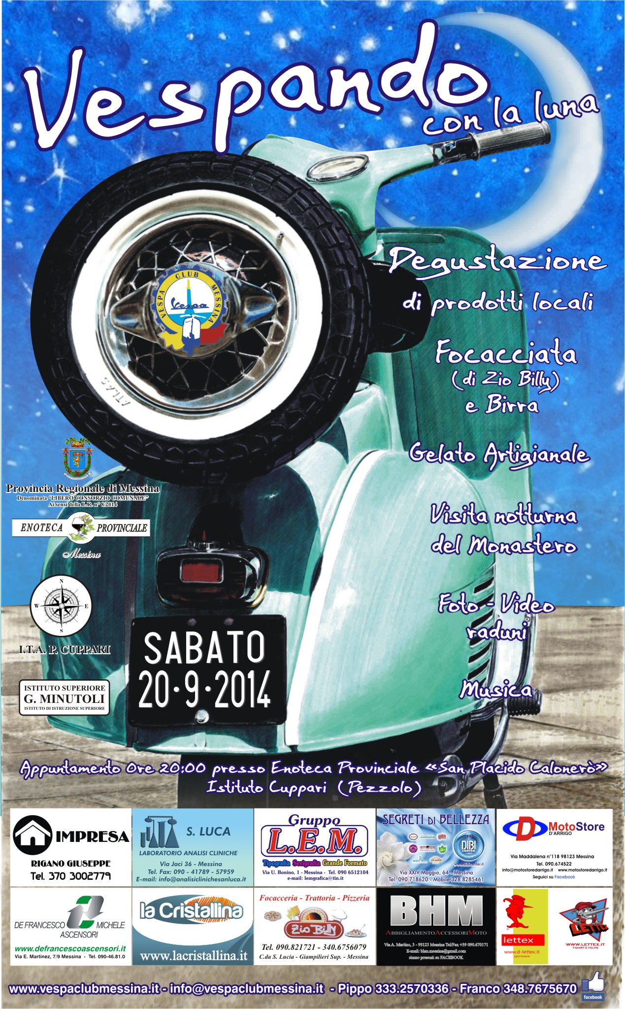 Cari Vespisti e Associati, dopo la lunga passeggiata a Pizzo, continuano gli apputamenti firmati Vespa con un incontro by night, a tu per tu con la Luna. Infatti, direttamente dal Monastero di San Placido Calonerò,...