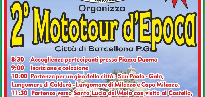 Cari Amici e Soci, il Moto Club VMC Barcellona, ha il piacere di invitarci al 2° Moto Tour D’Epoca Città di Barcellona P.G. per passare tutti insieme una giornata all’insegna del divertimento. Quindi appuntamento...