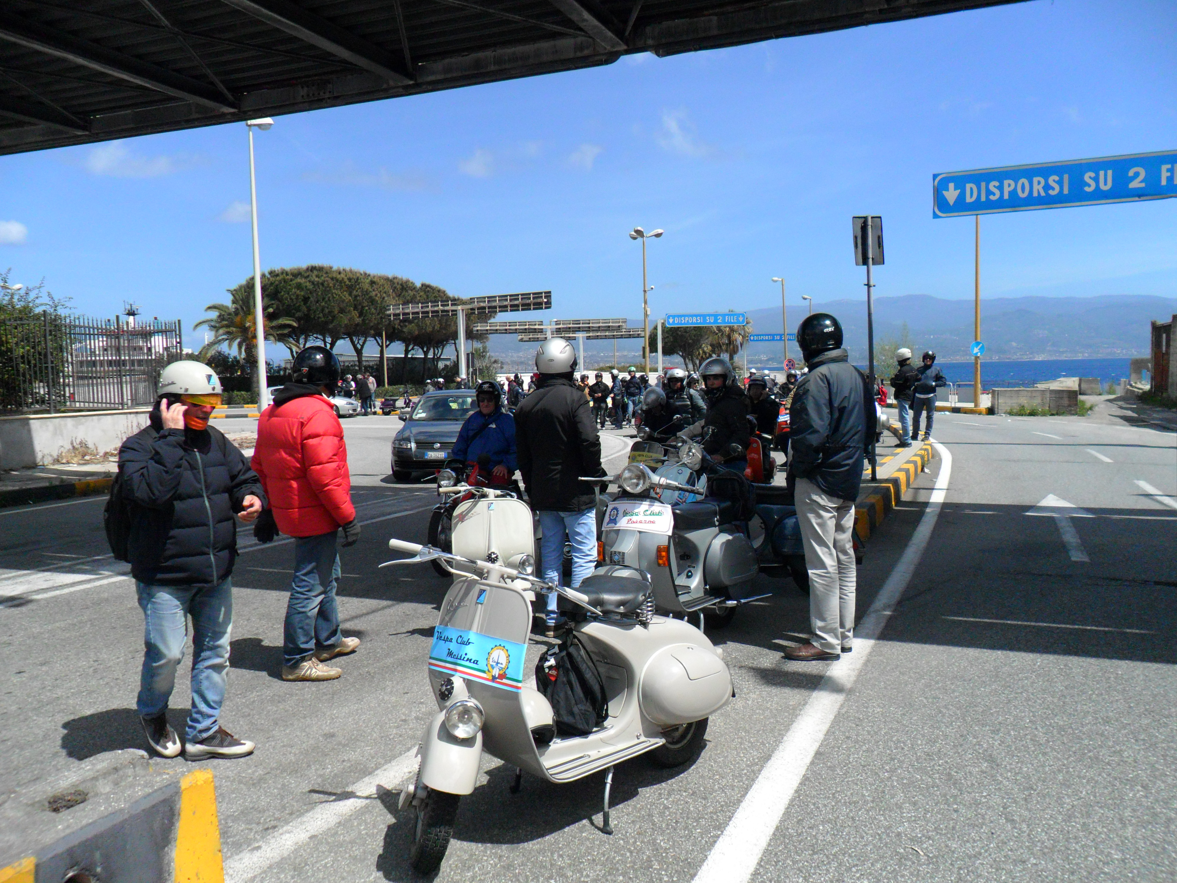 Arrivati alle ore 13 con la Caronte&Tourist, circa 80 Vespa hanno invaso letteralmente il serpentone dell’imbarco.