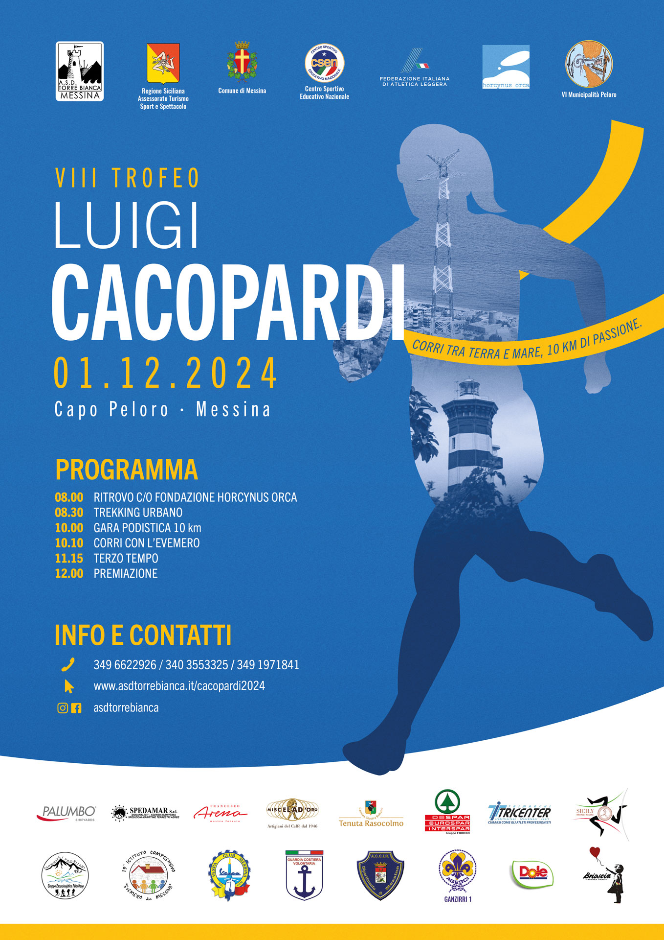 Carissimi Soci, anche quest’anno il VCM è stato inviato dall”A.S.D Torrebianca” a collaborare con gli organizzatori della VIII Edizione del Trofeo Luigi Cacopardi, la ormai nota gara podistica che si terrà a Torre Faro nella mattinata di domenica prossima 1 Dicembre 2024 che ci terrà impegnati dalle 9:00 alle 12:00 circa.